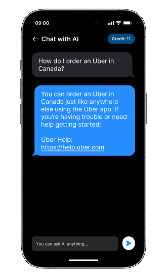 - Get official instructions instantly (“How do I add a stop in Uber?”)